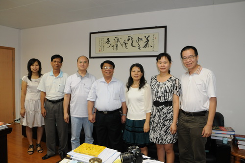 我司工會黃伯強主席(左三)、資訊部梁葆春經(jīng)理(右一)與開平市府辦有關(guān)負(fù)責(zé)同志及工作人員合影