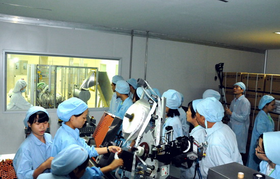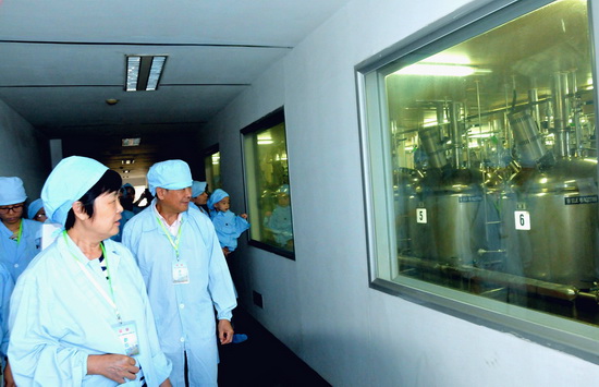 你見過藥品的生產(chǎn)過程嗎?進入生產(chǎn)區(qū)域參觀前,市民換上了潔凈服,這讓市民肅然起敬:“這企業(yè)質(zhì)量把關(guān)得好??!”生產(chǎn)工藝是一個企業(yè)產(chǎn)品的成功秘密之一,在工作人員的引導(dǎo)下,市民進入了潘高壽“最神秘的區(qū)域”——生產(chǎn)區(qū)域,一睹潘高壽馳名產(chǎn)品的生產(chǎn)過程。