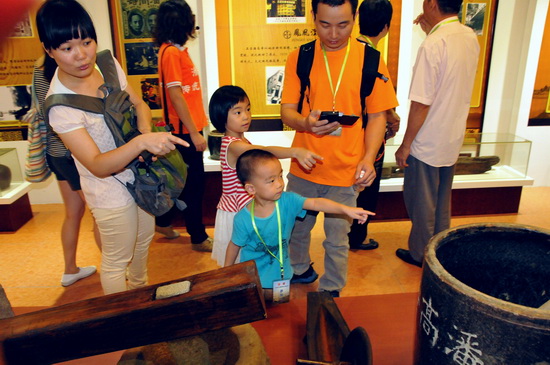 潘高壽文化展覽室展覽了不少潘高壽建廠以來的珍貴歷史文化圖片和資料,古色古香的碾藥器具、盥洗藥缸……很多古老的制藥工具都是現(xiàn)在的小孩子們沒有見過的,由此倍感興趣,不停地向在場的工作人員提問。