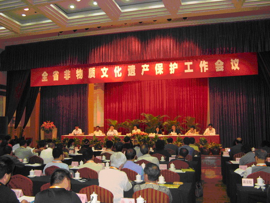 廣東省副省長雷于藍(lán)(主席臺左四)、省文化廳廳長方健宏(主席臺左三)、省委宣傳部副部長顧作義(主席臺右三)等領(lǐng)導(dǎo)出席會議并講話