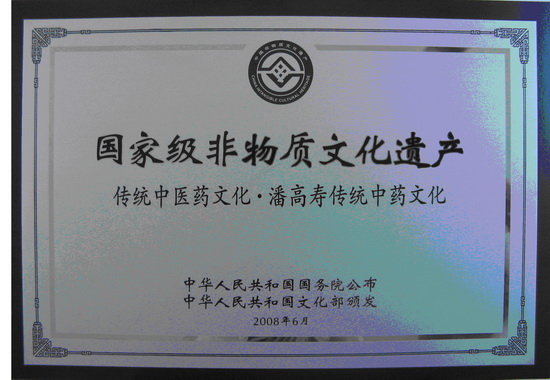 “潘高壽傳統(tǒng)中藥文化”國家級非物質(zhì)文化遺產(chǎn)標(biāo)牌