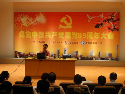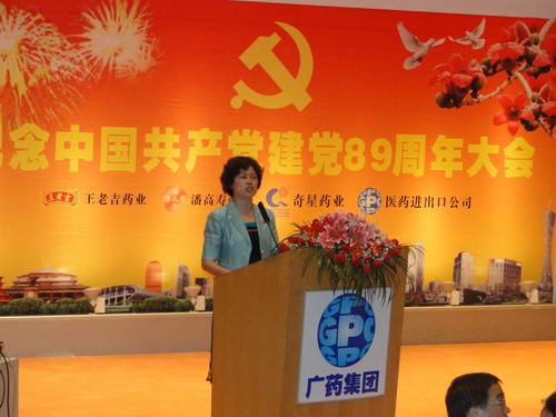 大會(huì)首先由廣藥集團(tuán)紀(jì)委書(shū)記、廣州藥業(yè)黨委書(shū)記楊秀微作紀(jì)念中國(guó)共產(chǎn)黨建黨89周年暨黨員紀(jì)律教育月活動(dòng)動(dòng)員講話。楊秀微書(shū)記在講話中回顧了我黨89年所走過(guò)的光輝歷程,勉勵(lì)在座的黨員,在迎接我們黨自己的光輝節(jié)日到來(lái)的時(shí)刻,更要牢記當(dāng)代中國(guó)共產(chǎn)黨人所肩負(fù)的歷史責(zé)任,準(zhǔn)確把握我們所處的歷史方位,清醒認(rèn)識(shí)我們面臨的形勢(shì)和任務(wù),在新的歷史條件下保持和進(jìn)一步提高企業(yè)黨組織的政治地位,充分發(fā)揮黨組織領(lǐng)導(dǎo)經(jīng)濟(jì)建設(shè)發(fā)展的堅(jiān)強(qiáng)核心作用,緊緊圍繞廣藥集團(tuán)的“百億工程”整體目標(biāo),認(rèn)真抓好各項(xiàng)工作,克服困難,把握醫(yī)藥行業(yè)大發(fā)展的機(jī)遇期,繼續(xù)保持企業(yè)又好又快發(fā)展的良好態(tài)勢(shì)。楊書(shū)記在講話中還對(duì)企業(yè)如何認(rèn)真抓好今年的黨員紀(jì)律教育學(xué)習(xí)月活動(dòng),加強(qiáng)企業(yè)的廉政建設(shè),反腐倡廉工作進(jìn)行了動(dòng)員,提出了要求。