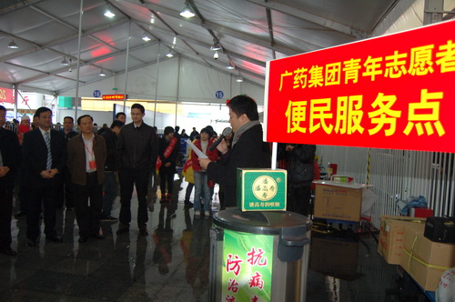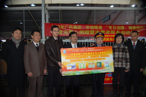 為了配合做好2012年春運工作,《羊城晚報》與廣藥集團共同在廣州火車站啟動了春運現(xiàn)場志愿者服務活動。元月15日上午,《羊城晚報》總編輯劉海陵等領導和白云山和黃中藥、潘高壽、王老吉、明興等企業(yè)領導等一行來到廣州火車站,針對車站工作人員在春運期間喊話多、休息少等狀況特別挑選了價值逾10萬元白云山板藍根、白云山涼茶、潘高壽潤喉糖、王老吉涼茶、清開靈膠囊等廣藥集團司屬產品。這些急需藥品、飲料,受到車站領導和工作人員的熱烈歡迎。 我司黨委書記鄭楠率領潘高壽手牽手義工隊人員到現(xiàn)場參加活動,為有需要的旅客送去關懷和溫暖,潘高壽潤喉糖特別受到了人們的歡迎。 從15日—22日,廣藥集團每天將派出志愿者在車站廣場開展志愿服務,為有需要的旅客提供熱飲及其他協(xié)助。參加本次志愿行動的志愿者將達到100人。 資訊部 良戈 (戴梅、林沃亮 圖/文)