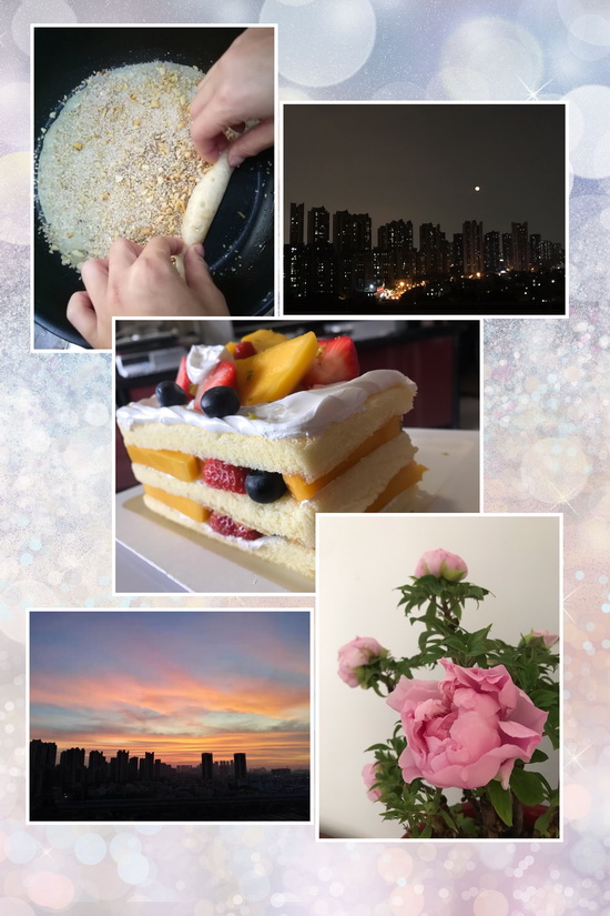 本次活動收到來自5個分會近八十名壽星員工的踴躍投稿,大家紛紛展示宅家抗“疫”日子中的精彩瞬間,有制作讓人垂涎的各種美食的快樂,有和家人慶生的小幸福,有親子娛樂的甜蜜瞬間,有插花弄草的閑情逸致,有欣賞窗外美景的輕松愜意……宅家的日子,我們一樣能過得豐富多彩:看書、畫畫、聽歌、喝茶、做美食、做運動、做家務……下面就讓我們隨著他們的作品去感受一下他們宅家的精彩生活吧!